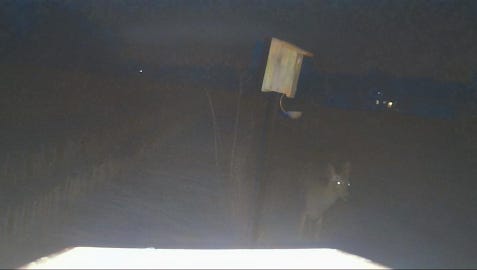 Sometimes I check the trail cam in the morning for fun nighttime visitors. Mostly just deer, but sometimes I hope for a racoon or a coyote. Iβd love to see a coyote!