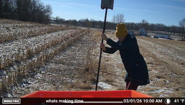 β¦until I saw the first daytime photos and noticed the frame of the image was off. That the deer must have nudged the whole platform over a bit. This was not surprising because 1) deer are big and strong and 2) the ground was so frozen I couldnβt get the t-post in and had to brace it with a step-in post and lash them together. Read: not very stable.