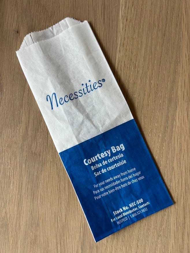 I had to go to the dentist this week. They have these little “Courtesy Bags” in the bathroom stalls. If you didn’t find this in the bathroom stall in the women’s room would you have any idea what these words mean? Gosh - let’s pretend all the things that are…aren’t.