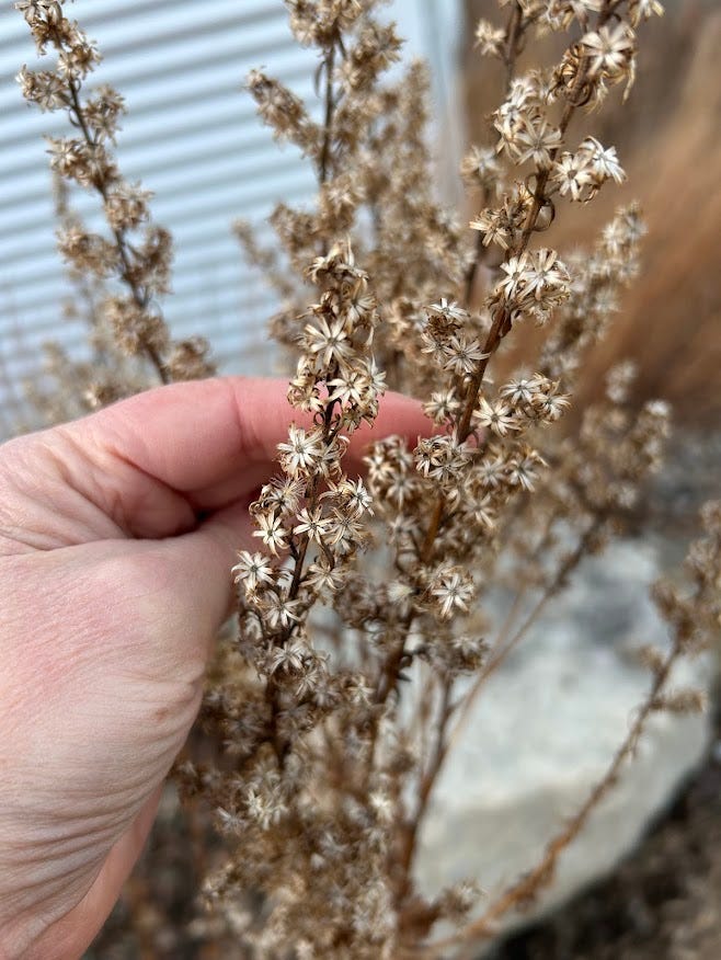 And I’ve cut back most of the plants around the house on the warm days so far, but I’ve left the Stiff Goldenrod because it’s so pretty. It will be the last to get cut back - and I’m curious to look for nesting insects in the stems.