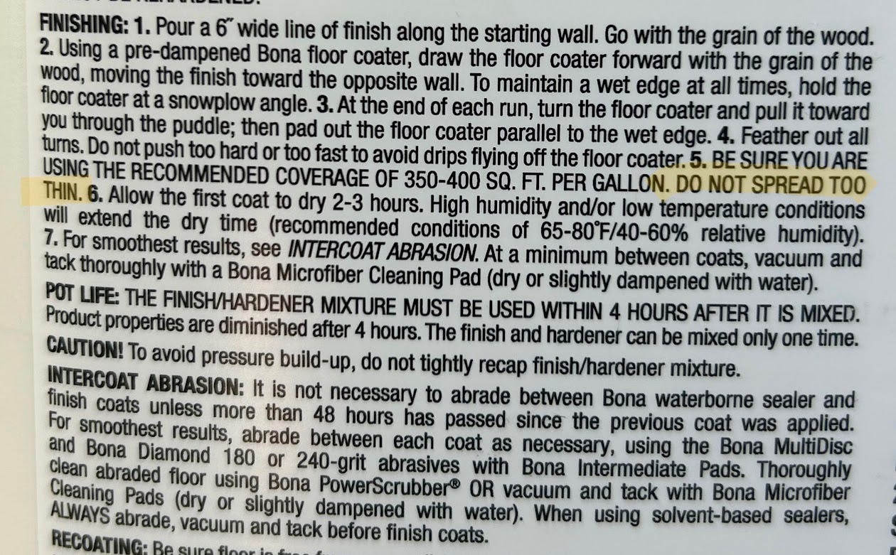 Last, but not least - yesterday I was thoroughly reading (and re-reading) the instructions on the back of the floor finish. It’s one of those products that requires you to mix two different liquids in very precise measurements and if you don’t do it exactly right YOU WILL FAIL.