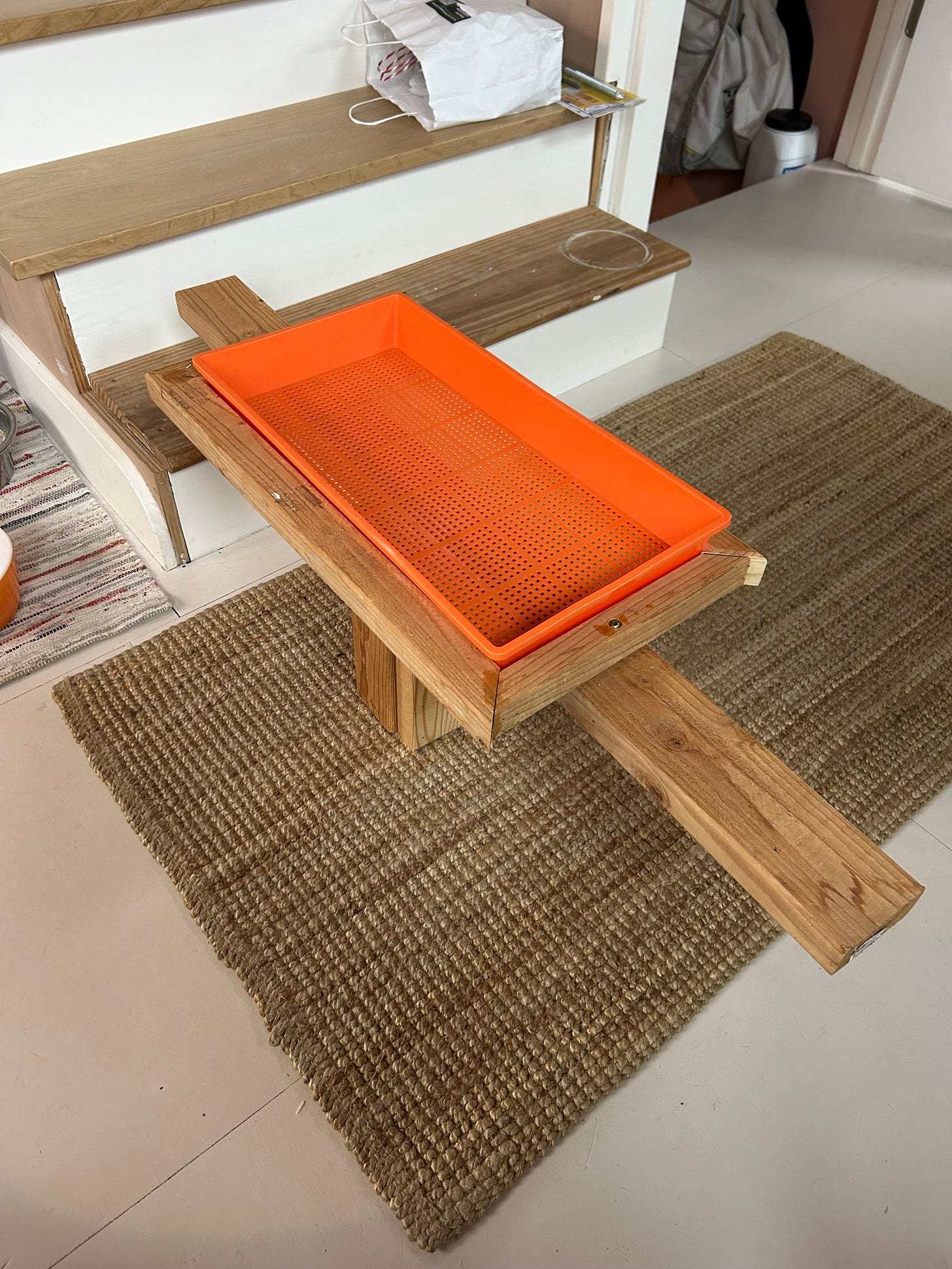 So. IDEAS. (More on ideas in the next post too). The idea is I wanted to build a crow feeder. And this was an approved project. (You know, because the stair project is not finished…as you can see in the photo below.)