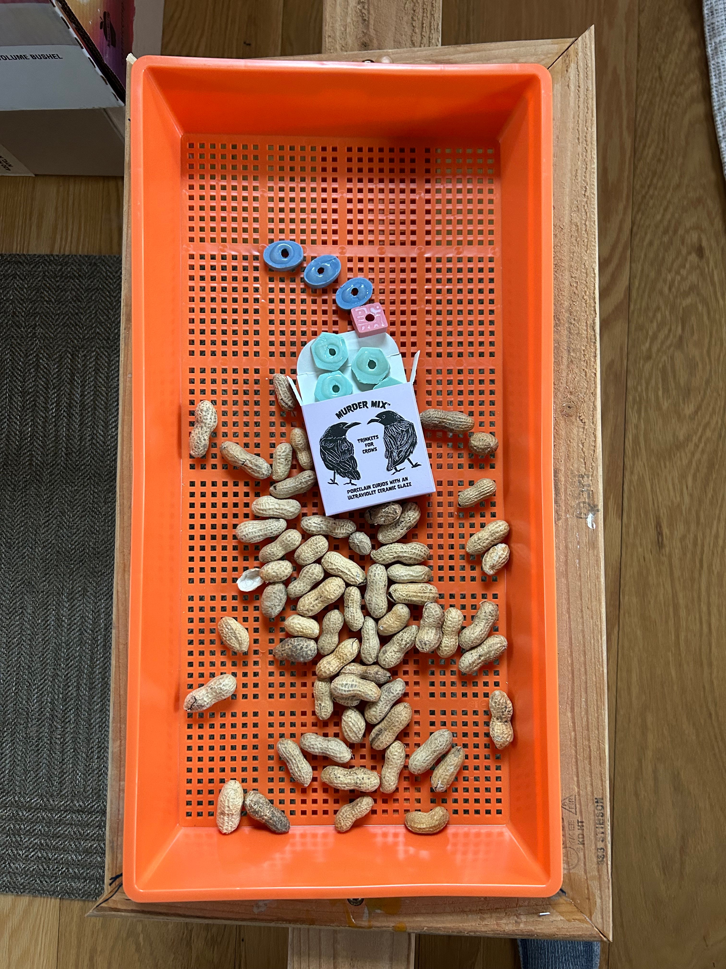 Vanessa, you had me laughing again! I loved reading this and I feel very invested in what happens next. LOVE the trinkets, their branding (“Murder Mix” is freaking brilliant 🤌🏻), the whole concept. And now I, too, want to feed crows and have them leave me treasure!