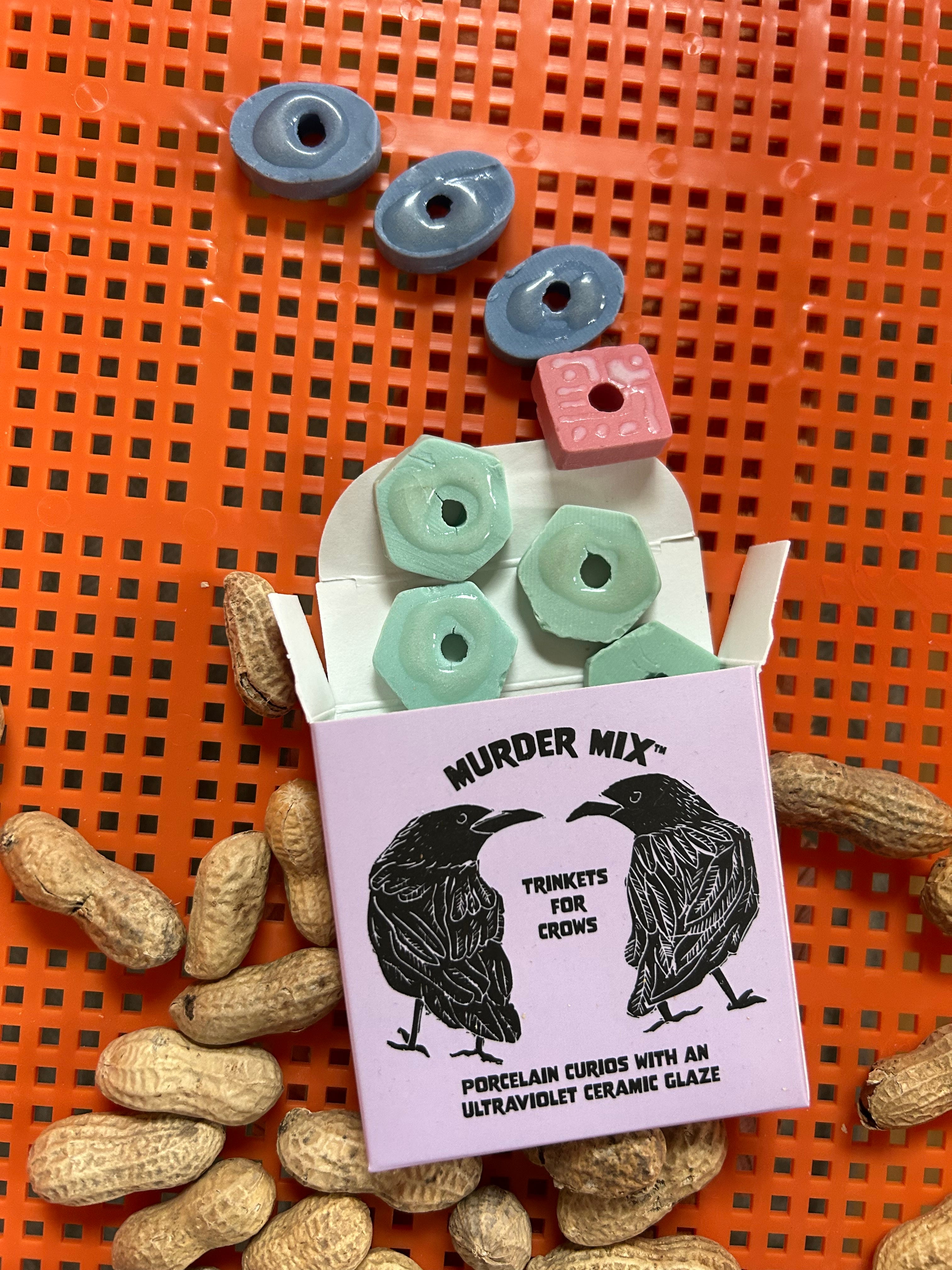I *think* it started last fall when I saw this really cool little video on Instagram about this potter who makes these little porcelain trinkets with a UV glaze. AND THEY ARE FOR CROWS.